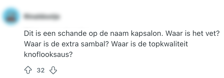 Wat doe je als je zin hebt in een lekkere, vette kapsalon? Er zijn drie mogelijkheden. A. Je geeft niet toe aan je craving en gaat door met je leven. B. Je opent Thuisbezorgd en bestelt erop los. C. Je rijdt naar de dichtstbijzijnde supermarkt en koopt daar een kapsalon-verspakket. Als het aan veel Reddit-gebruikers ligt, is C geen optie. Zij zijn niet te spreken over dit bijzondere maaltijdpakket van Jumbo, en hebben er nog wel een (aard)appeltje mee te schillen.
