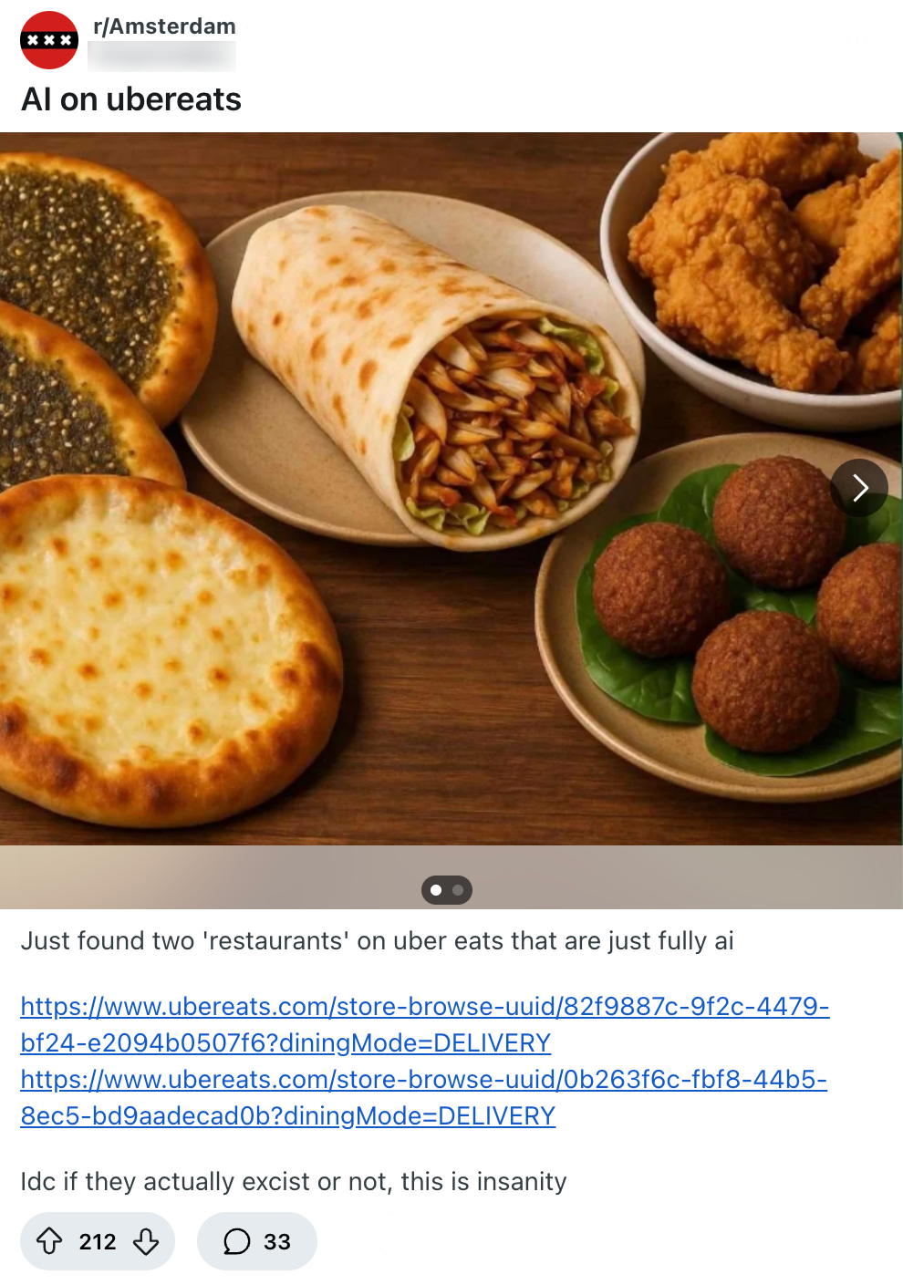 Op Uber Eats krijg je verschillende soorten gerechten te zien uit allerlei wereldkeukens. Chinees, Turks, Mexicaans: noem het maar op. Maar wanneer deze Amsterdammer iets probeert te bestellen, ziet ze twee restaurants die nogal onaangename foto’s gebruiken. Andere klanten zijn het snel eens over wat ze hiervan vinden, en het klinkt niet al te positief.