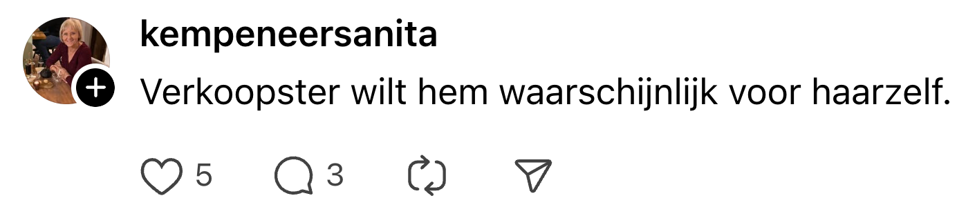 3. Al vermoeden sommigen dat de verkoopster niet al haar motieven laat zien.