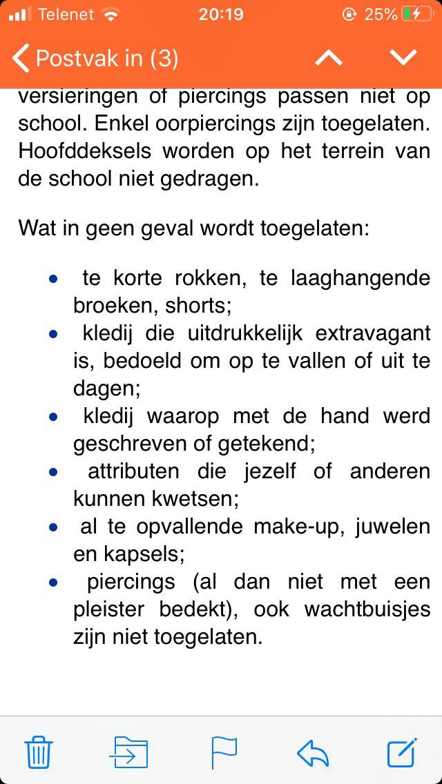 Wtf man?! Ben echt blij met mijn school, daar staan literally geen regels op kleding of make up en zo. Ben daar zo blij mee, ze zouden da echt in alle scholen moeten doen!!!