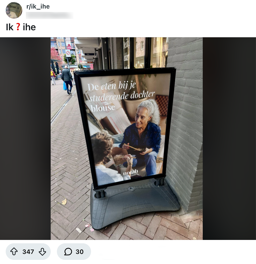 1. Ah natuurlijk, het advertentie van een kledingwinkel voor een trendy blouse voor een super specifieke situatie bord.
