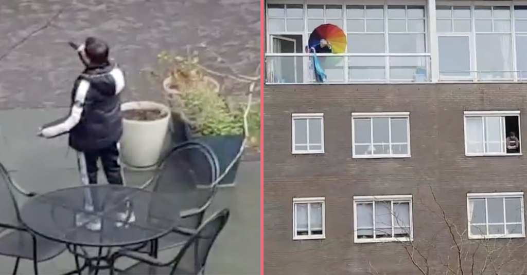 2. Volgens sommigen zou het gaan om de 12-jarige Silver Metz, winnaar van The Voice Kids ’19 en musicalster. Maar honderd procent zeker is het (nog) niet. Al lijkt het niet onwaarschijnlijk gezien de kleine Amsterdammer opgroeide in De Pijp en niets liever dan Hazes zingt. Hoe dan ook, dit zijn de beelden waar we in deze tijden vrolijk van worden. En ook zeker voor de senioren die binnen zitten.