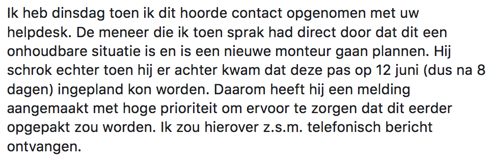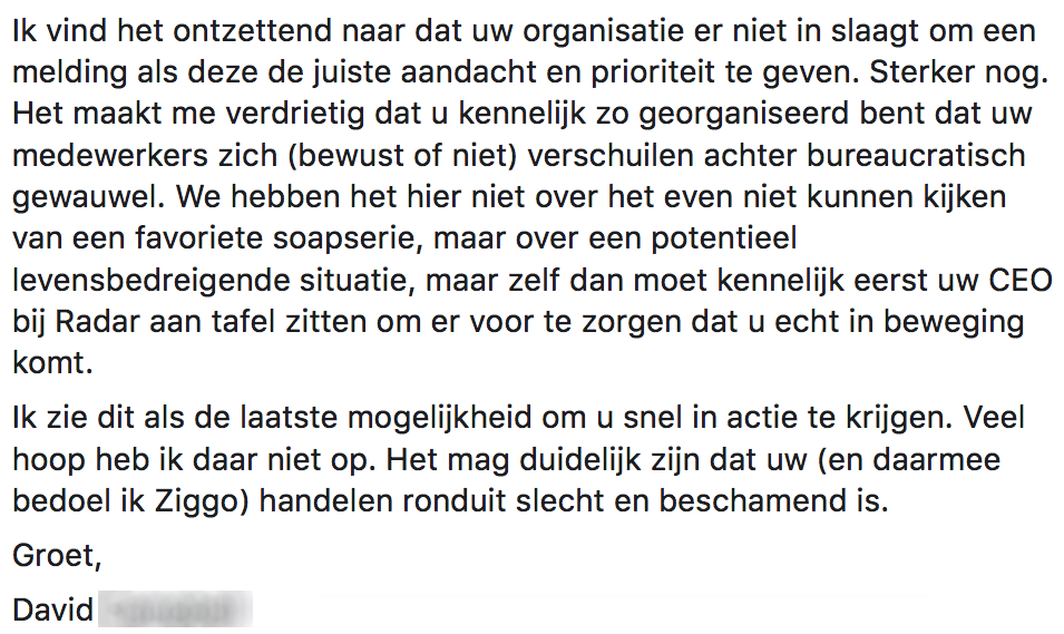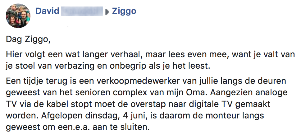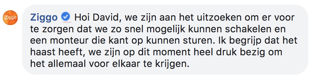 4. David had al eerder contact opgenomen met Ziggo.