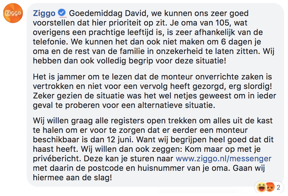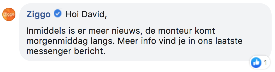 En dan komt er goed nieuws van Ziggo.