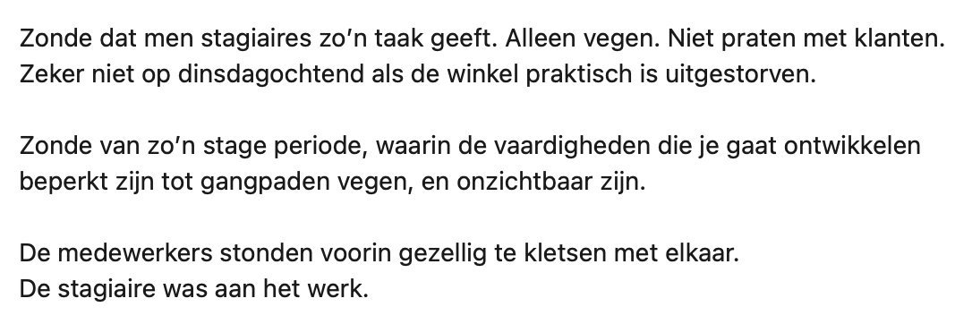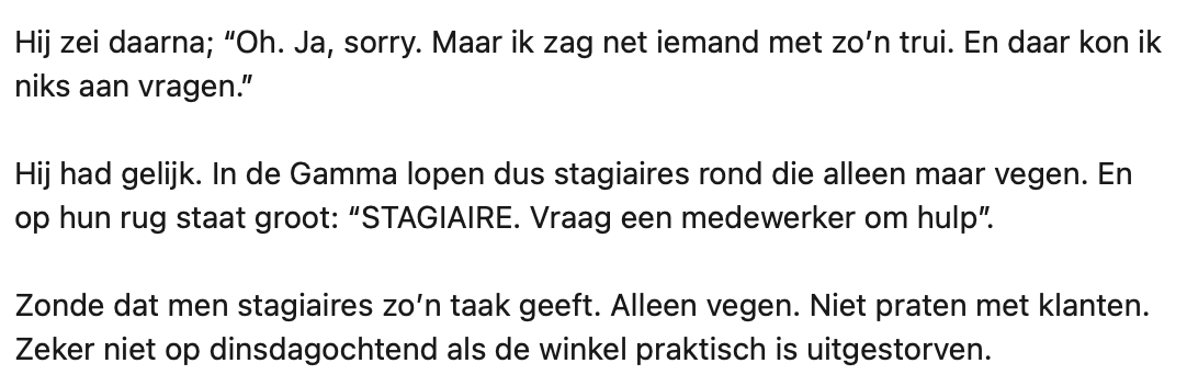 2. De klant wijst hem erop dat stagiaires geen klanten mogen helpen in de Gamma.