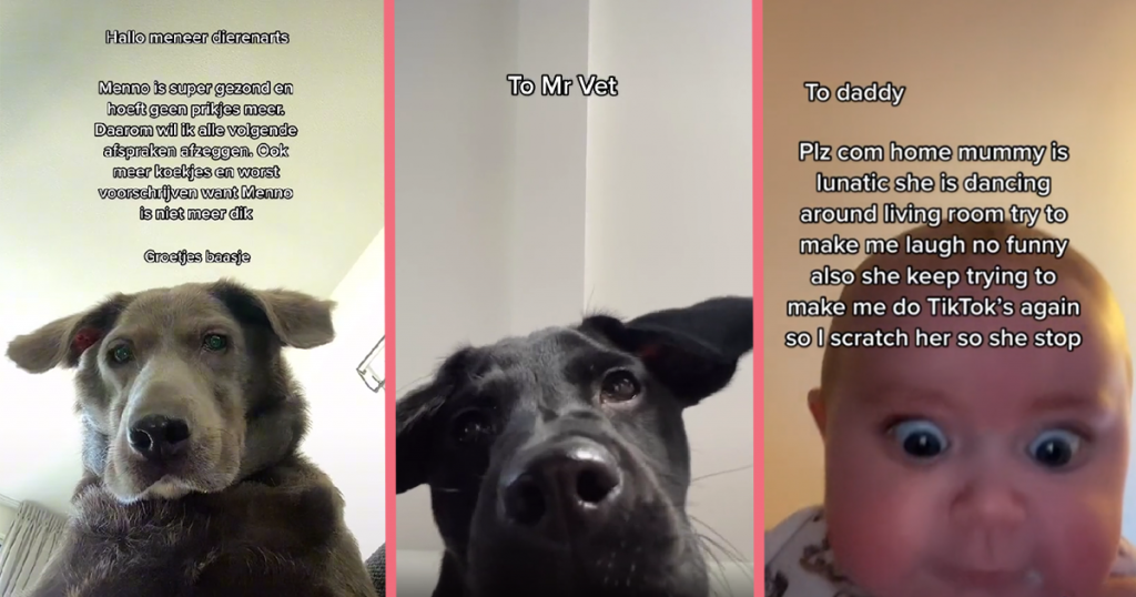 ‘Hebben honden nu wel of geen bewustzijn?’ Die discussie wordt nog altijd gevoerd. En hoe zit dat eigenlijk met pasgeboren kinderen: kunnen zij wel voor zichzelf denken op jonge leeftijd? Echt zeker weten we het helaas nooit. In ieder geval niet totdat er een talenschool voor deze doelgroepen wordt opengegooid. Deze trend op TikTok laat in ieder geval wel zien wat er door hun hoofden omgaat. Deze kinderen en honden bijten dan ook zeer zeker van zich af aan de hand van passief agressieve mailtjes.