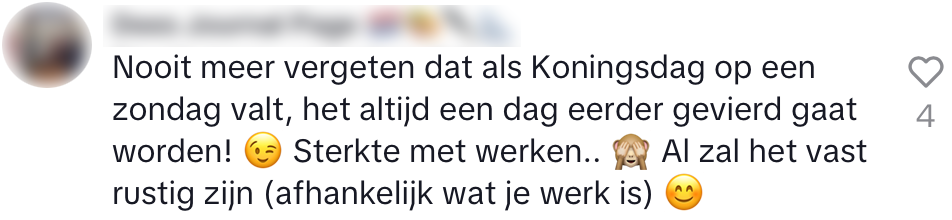 2. Ze is niet de enige die dacht dat Koningsdag gewoon op zondag werd gevierd.