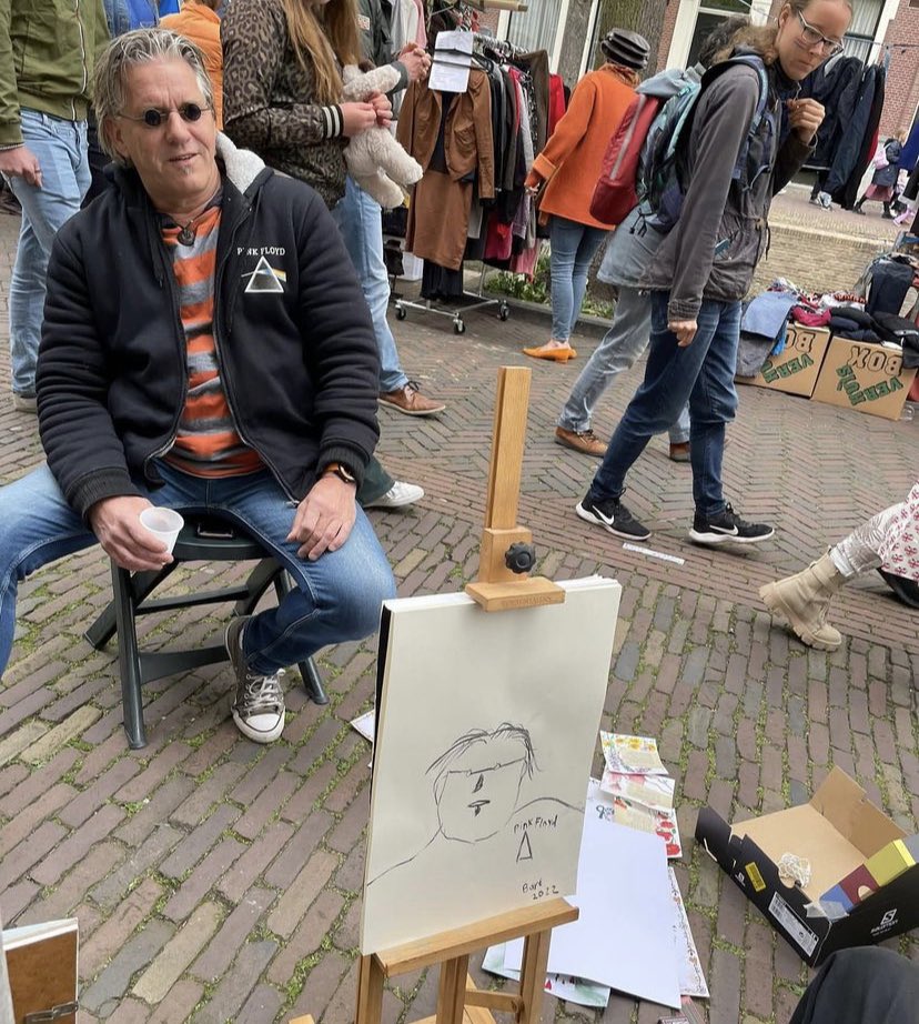 Stuk om deze gast die op Koningsdag de hele dag mensen in zijn stoel had zitten voor een houtskool-portret :’) pic.twitter.com/cHFZcqwr9N
