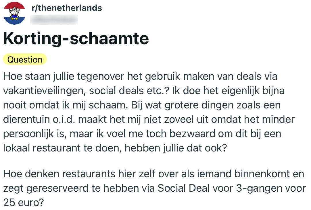 1. Deze Reddit-gebruiker lijkt niet helemaal de Nederlandse mentaliteit op het gebied van korting te hebben.