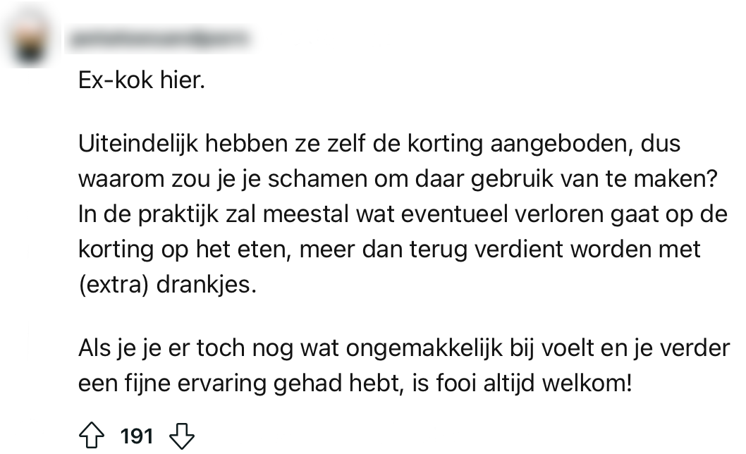 2. Een oud-restaurantmedewerker vindt korting pakken niets om je voor te schamen.