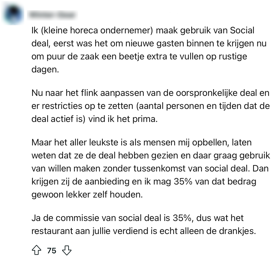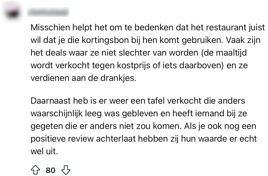 6. Deze horeca-ondernemer vindt het vooral fijn als klanten rechtstreeks naar het restaurant bellen met hun vragen over korting.