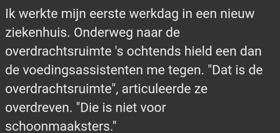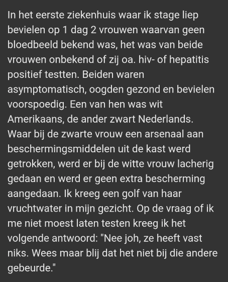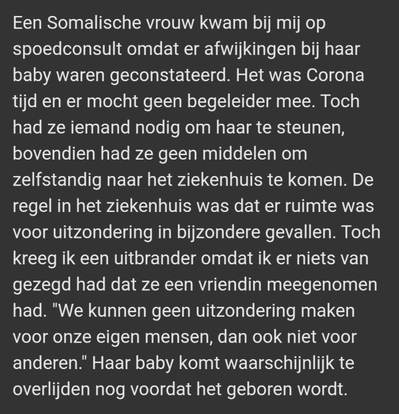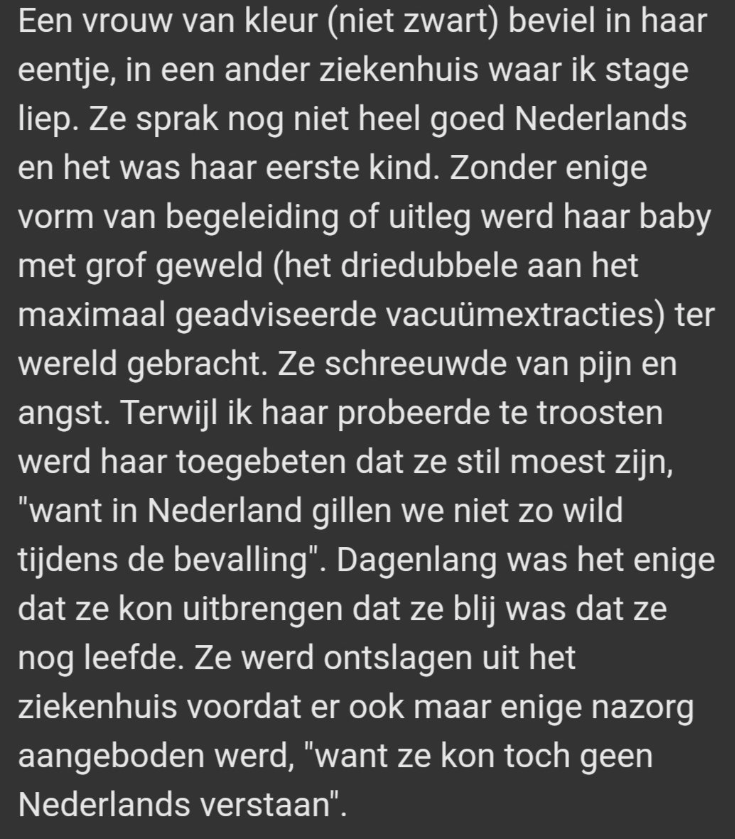 Mijn dochter studeert verloskunde in Antwerpen en heeft vergelijkbare verhalen verteld over haar stages. Het is verschrikkelijk. Goed dat je dit wereldkundig maakt.