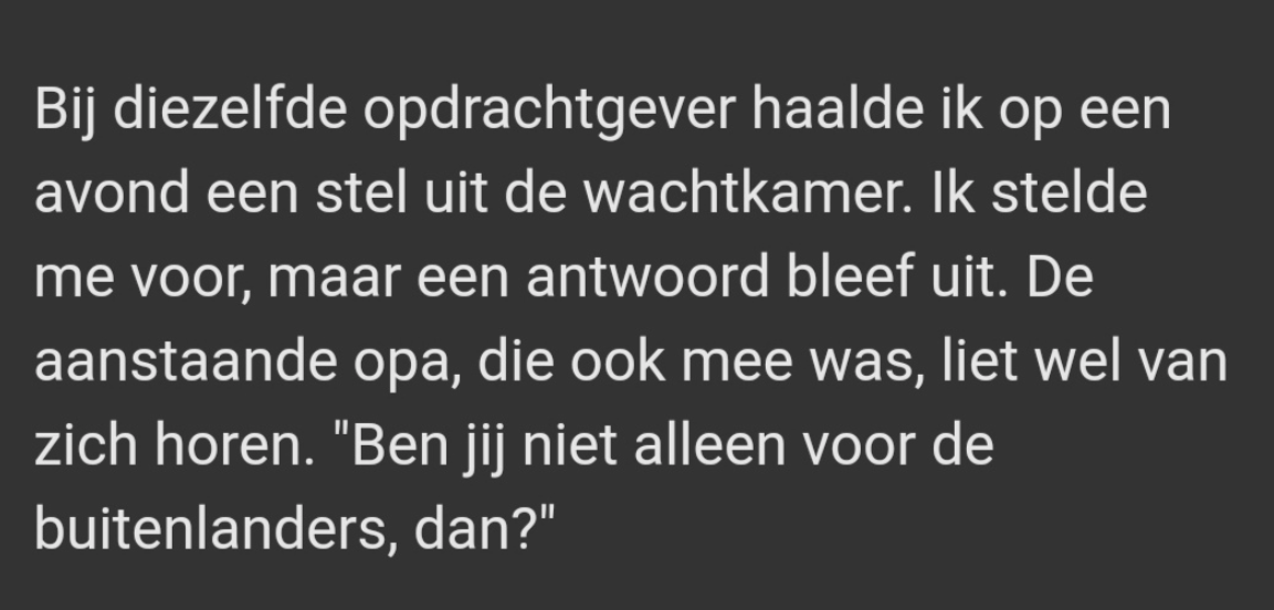 Het zijn weerzinwekkende toestanden waar velen vaak mee te maken krijgen, dag in dag uit, alsof ‘t de normaalste zaak is. Maar ook als je ‘t allemaal zo opsomt, realiseer je wel hoe verfoeilijk en schadelijk institutioneel racisme is. En op den duur doet dit toch wel iets met je.