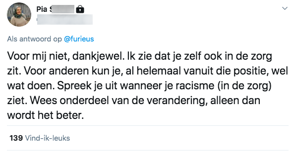 Het afgelopen jaar werd er ontzettend veel gesproken over racisme. Ook Pia deelde haar ervaringen met racisme in de kraamzorg. Ze besloot het daarom op Twitter te delen.