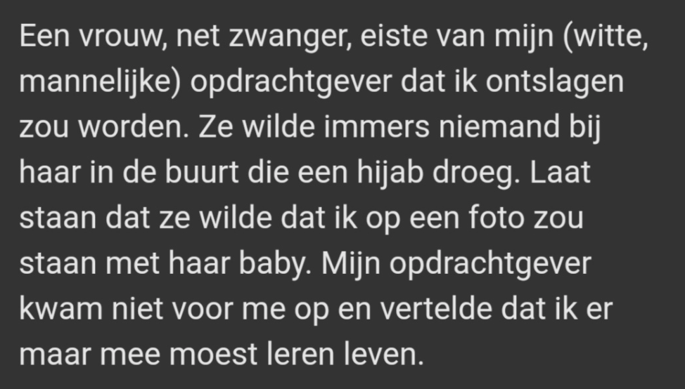 4. Want ze voelt zichzelf ook regelmatig gediscrimineerd.