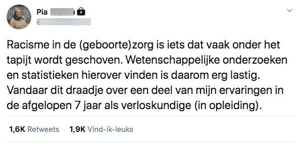 Het afgelopen jaar werd er ontzettend veel gesproken over racisme. Ook Pia deelde haar ervaringen met racisme in de kraamzorg. Ze besloot het daarom op Twitter te delen.