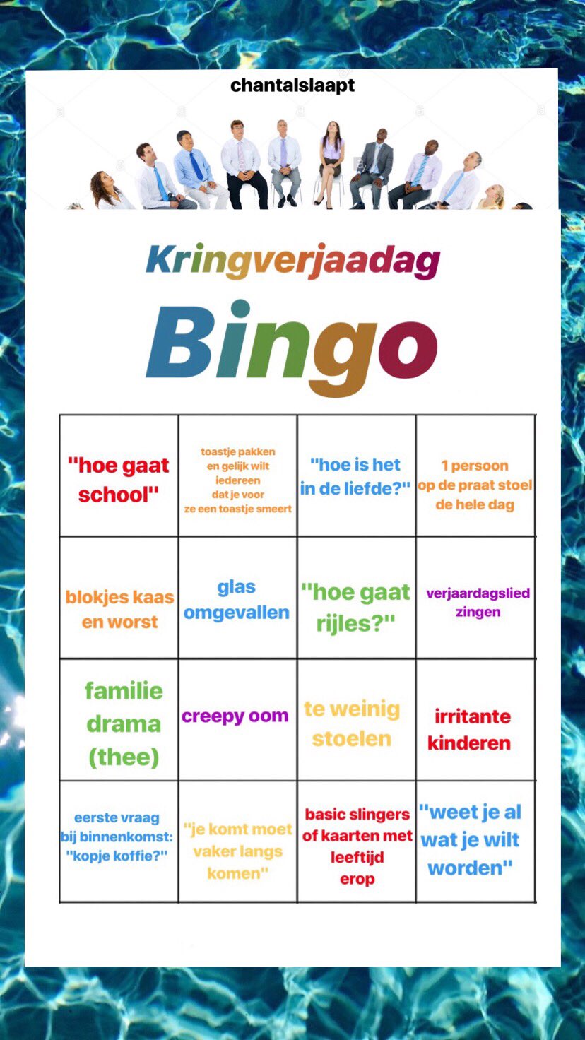 5. Met deze bingokaart sla je zelfs uit de meest saaie kringverjaardag een (huzaren)slaatje.