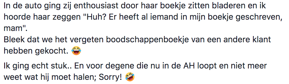 4. Eindstand: je hebt andermans vergeten boodschappenboekje gekocht.