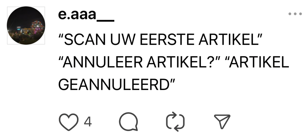 8. Eigenlijk zouden er oordopjes bij de zelfscankassa van Kruidvat moeten liggen.