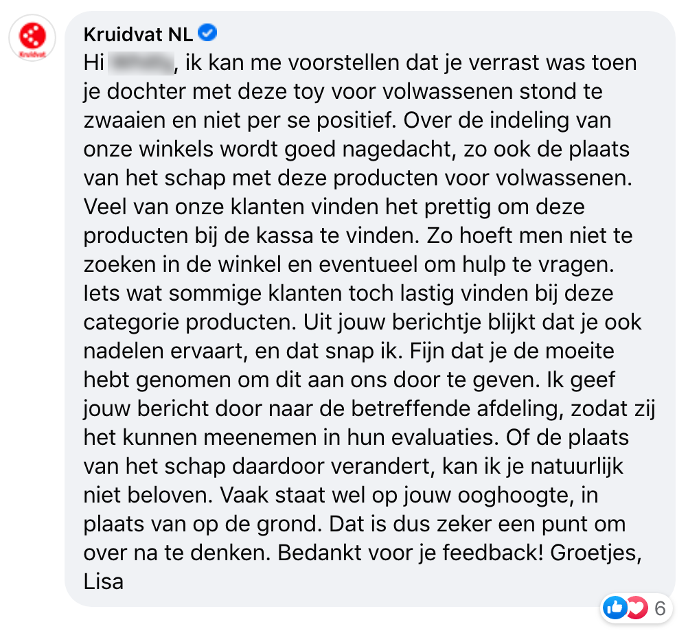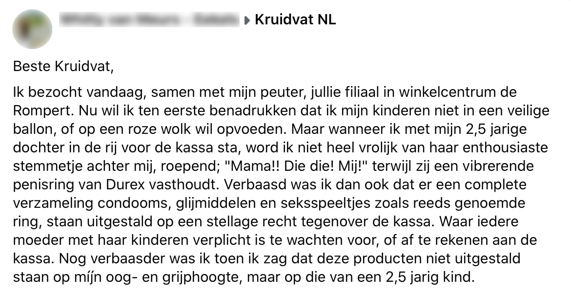 5. Kruidvat reageert en laat duidelijk weten dat er een reden is voor de plaatsing van het product.