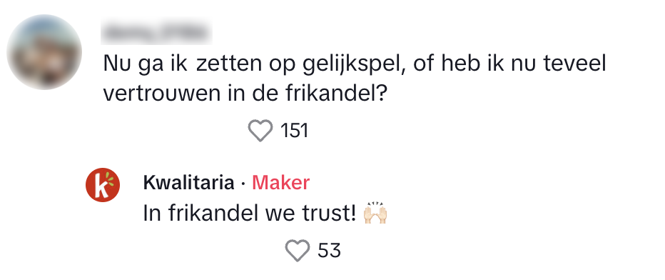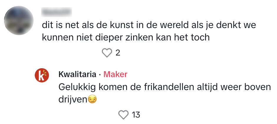 3. …maar Kwalitaria frituurt het commentaar vakkundig.