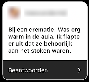 We hebben allemaal weleens momenten gehad waarop we in de lach schoten. Alleen is dit misschien niet zo handig tijdens die ene belangrijke presentatie of de begrafenis van je lievelingsoma. Toch krijgen veel mensen hiermee te maken, júíst omdat het tijdens deze momenten niet zo handig is. We vroegen jullie naar dit soort slechtgetimede lachbuien en hoeven nu gelukkig niet onze lach in te houden.