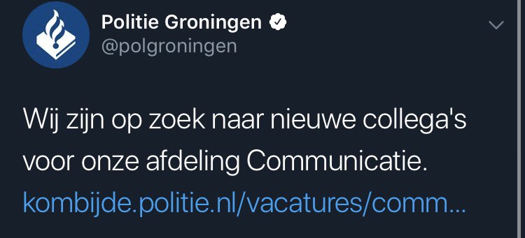 Ik snap zomaar opeens waarom deze vacature openstaat bij de politie in Groningen. 🤔 pic.twitter.com/WX6OS0pha9