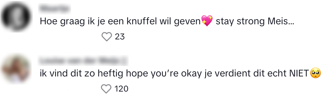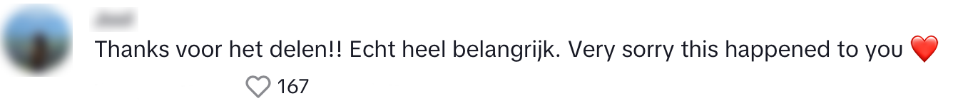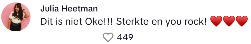 4. Ze wordt in de reacties overladen met steun.