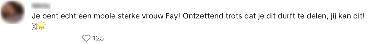 5. Mensen vinden het heel knap dat Fay dit verhaal zo open deelt.