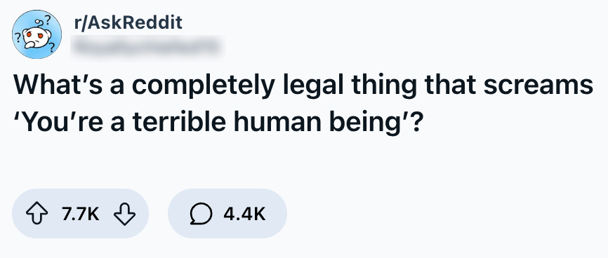 De trein in sprinten voordat er ook maar één reiziger is uitgestapt, schouderduwtjes à la Virgil van Dijk uitdelen om een lege stoel te bemachtigen, niet opstaan als een krakkemikkig oud vrouwtje de bus in strompelt, of voordringen in de rij voor de Joris en de Draak. Voelt fout, toch? Maar hé, het is allemaal volledig legaal. Een Reddit-gebruiker vraagt zich af welke acties technisch gezien mogen, maar je doen overkomen als een eikel. Nou, mensen, houd je vast: hier komen een paar volkomen legale bezigheden die je direct op de shortlist voor ‘meest hinderlijke persoon van het jaar’ zetten.