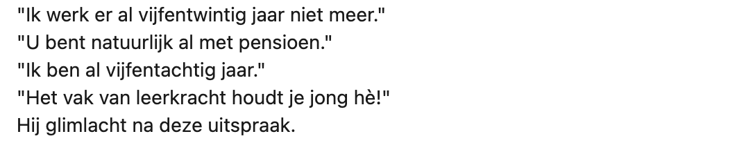 2. De leraar is inmiddels met pensioen, maar eens een leerkracht, altijd een leerkracht.