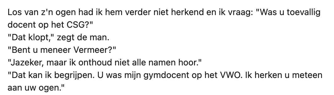 1. Bart herkent zijn oud-docent meteen aan zijn ogen: “Bent u meneer Vermeer?”