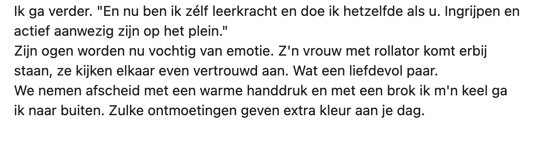 4. Het actief ingrijpen bij incidenten, wat meneer Vermeer altijd deed, heeft Bart geïnspireerd om het mooie werk van zijn oud-docent door te zetten.