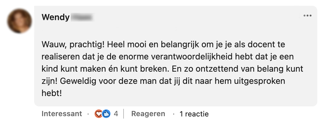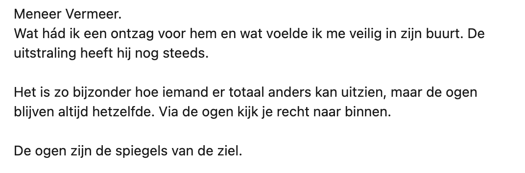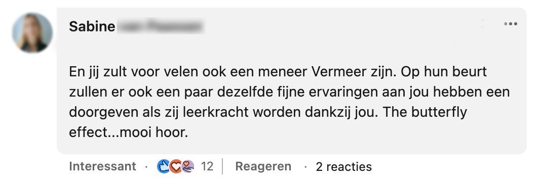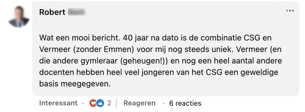 6. Meneer Vermeer blijkt op andere leerlingen ook indruk te hebben gemaakt.