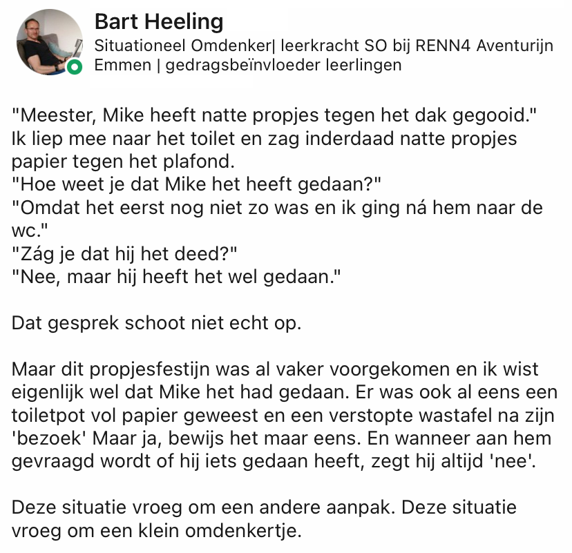 1. Meester Bart heeft al een voorgevoel wie de dader is, maar kan niks met zekerheid zeggen, zo laat hij weten op LinkedIn.