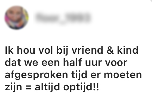 5. Zijn ze nu ook standaard een half uur te laat als jij er niet bent?