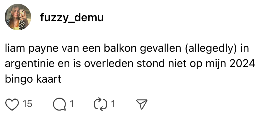 Heel veel ophef over de dood van Liam Payne (vml One Direction). Begrijpelijk want je hoort niet te sterven begin 30. Bedenk wel wat je over hem schrijft, internet is voor altijd. Hij zal het niet meer lezen maar zijn zoontje misschien wel 😓. #RIPLiamPayne