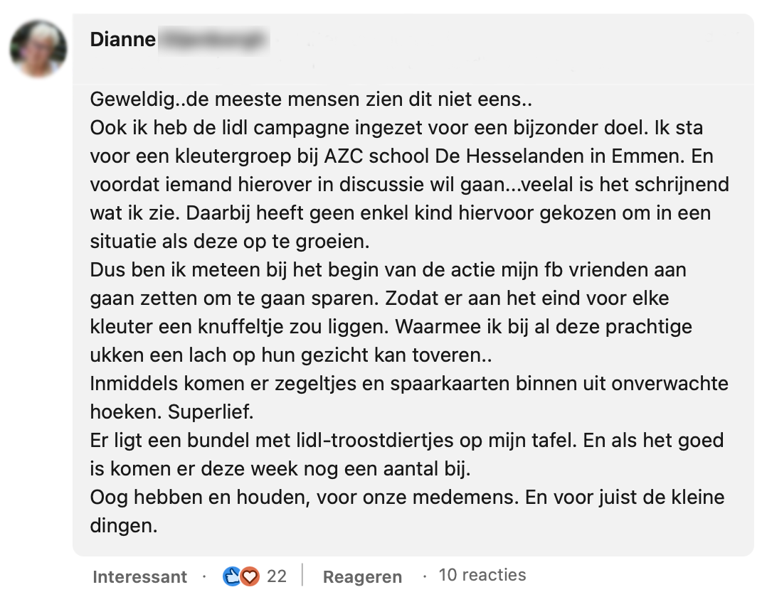 7. Dianne spaarde samen met anderen de achtertuinmini’s van Lidl voor een goed doel.