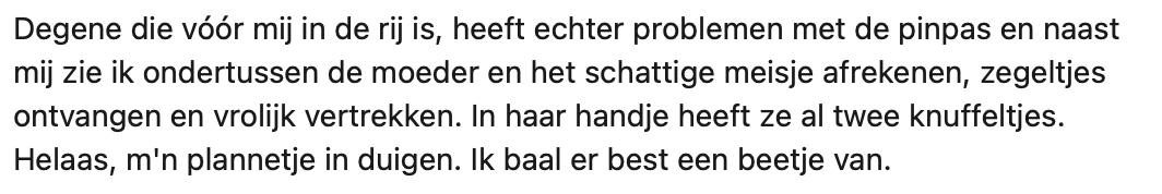 1. Bart kwam in de rij van de Lidl een klein meisje tegen en besloot dat hij zijn zegels van de spaaractie aan haar wilde geven.