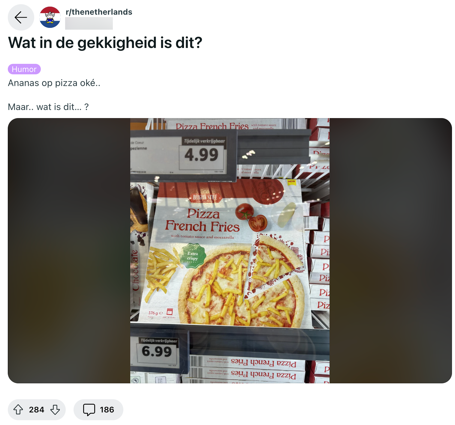 Wanneer je na een behoorlijk lange werkdag nog effe een pitstop bij de supermarkt moet maken om zonder plan een avondmaaltijd te scoren, is dat eigenlijk hét recept voor frustratie en chaos. Een totale black-out is gegarandeerd zodra je voor de schappen staat, maar met een kant-en-klaarmaaltijd zit je eigenlijk altijd goed. Hup, richting de diepvriespad. Wanneer deze Lidl-klant dit gangpad binnen slentert, stuit diegene op een nogal merkwaardig nieuw product dat absoluut het delen waard is.