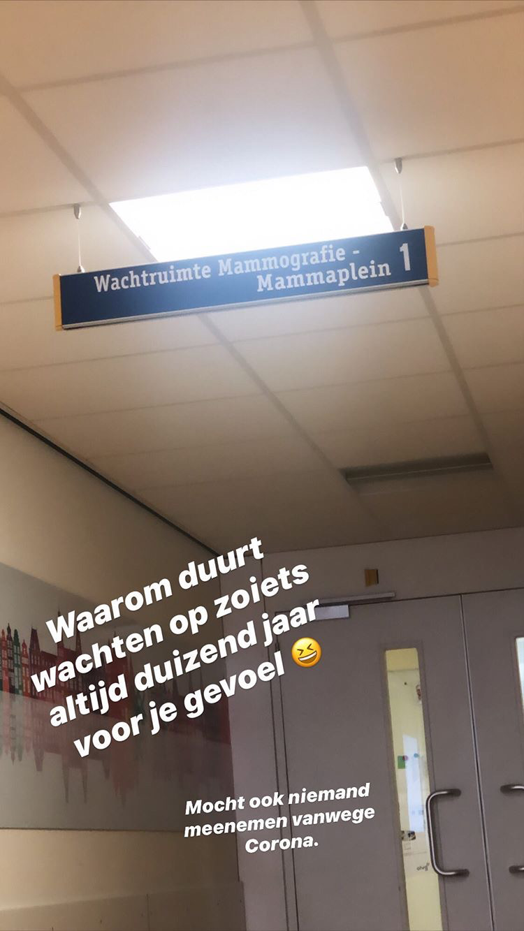 1. Via Instagram Story vertelt zij over de ontdekking van het knobbeltje in haar borst.