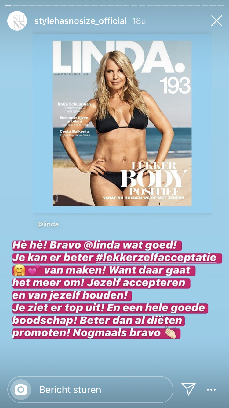 Een blik op het tijdschriftenrek of een rondje Twitter leert je dat een lichaam als dat van Linda helemaal niet al ‘volledig geaccepteerd is door de maatschappij’. Sterker nog, ik denk dat Linda bij uitstek een vrouw is die hiermee écht body positivity propageert voor velen.(2/3)