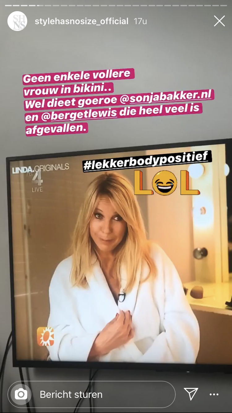 6. Bij RTL Boulevard volgt een interview met Linda. En daarna volgt er ook kritiek. Want de voice-over bij roept alle vrouwen tussen maat 36 en 48 op om de bikinifoto’s te delen. En sluit daarmee dus opnieuw mensen buiten.