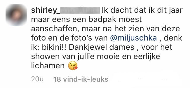 2. Linda vertelt in het interview dat Miljuschka Witzenhausen haar grote voorbeeld is op dit gebied. Miljuschka deelt namelijk regelmatig dit soort foto’s en is geheel terecht trots op haar lijf.