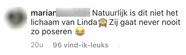 4. Maar er verschijnen ook al snel comments van mensen die niet geloven dat Linda dit echt is of die denken dat er veel aan gephotoshopt is.