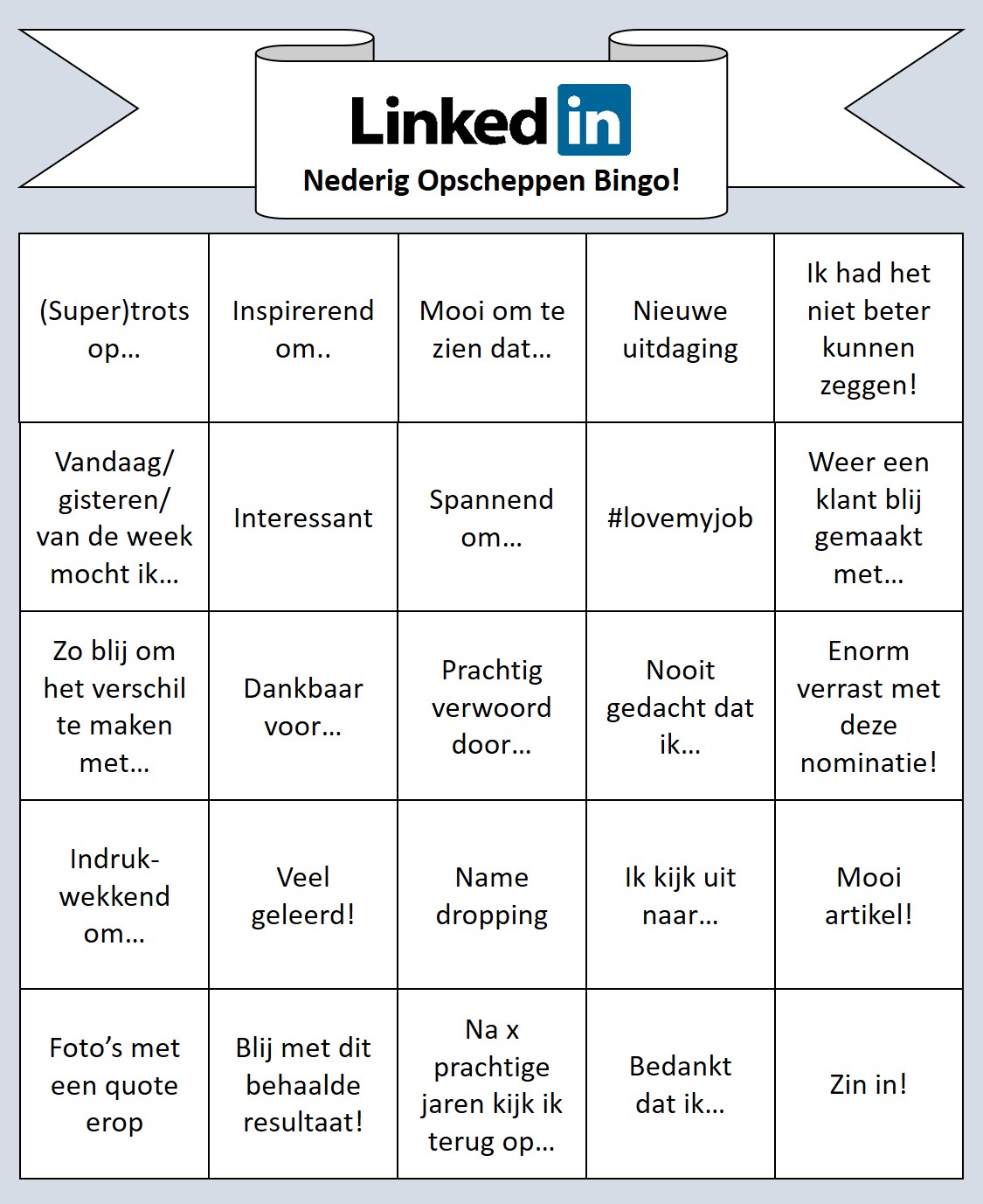 LinkedIn is tegenwoordig niet meer weg te denken uit de social media wereld. Het is een platform om nieuwe kansen en contacten te creëren, maar ook om nederig op te scheppen over je prestaties. Dit vond ook Jochem Westerhof, en hij maakte een LinkedIn Bingo met de meest cliché LinkedIn taal.