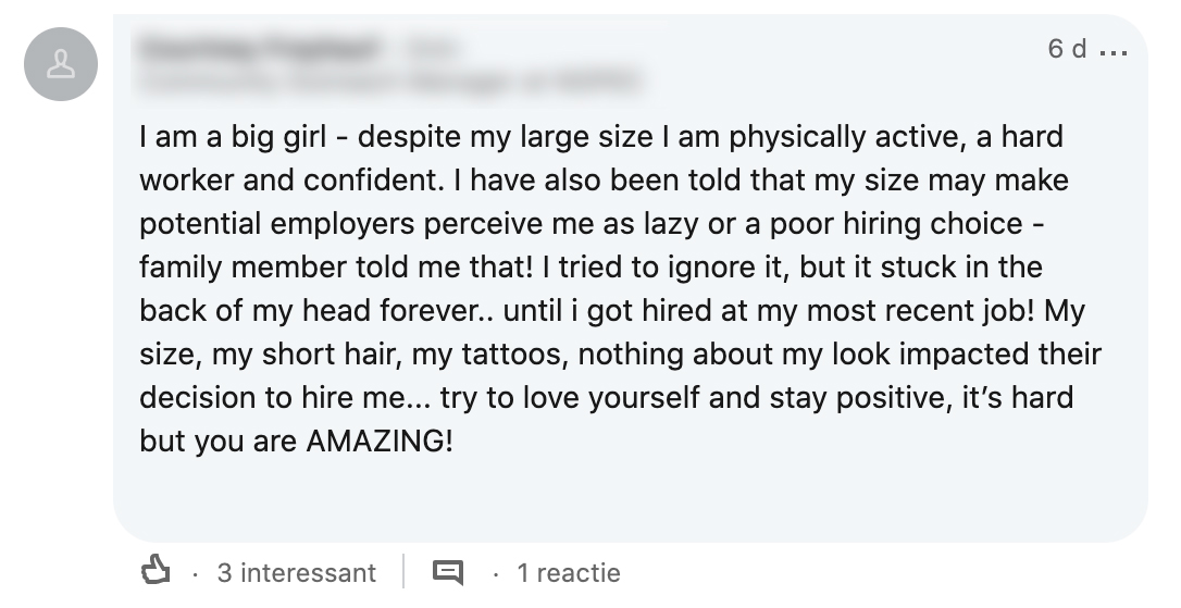 Het is niet makkelijk om persoonlijke worstelingen op werkgebied met anderen te delen. Jessica schrijft een persoonlijk verhaal op LinkedIn over body shaming.