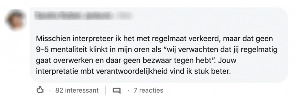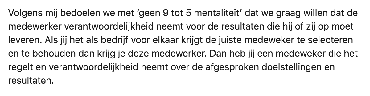 2. Maar dit is volgens haar niet wat met ‘9 tot 5 mentaliteit’ bedoeld wordt.
