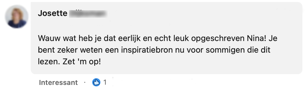 9. Uiteindelijk, zijn er genoeg mensen die zich herkennen in het verhaal van Nina. Het is belangrijk dat je op je eigen tempo bepaalde stappen zet en je niet onder laat sneeuwen door iedereen bij wie het ‘zo fantastisch’ lijkt te gaan.