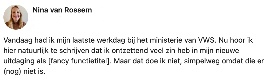 1. Nina geeft een bijzondere draai aan de ‘standaard’ LinkedIn-post.